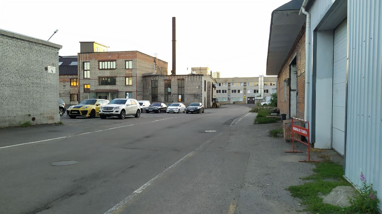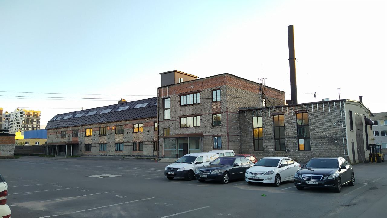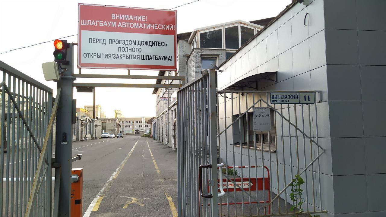 Здание полигона ОФИС и платная парковка перед ним