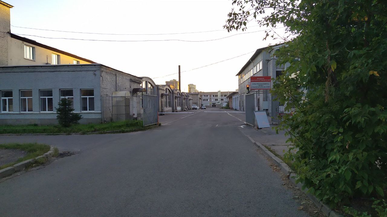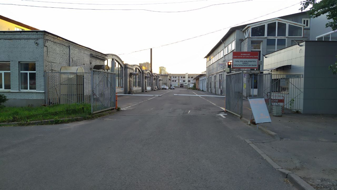 Через 80 метров от КПП уже видно наше здание с трубой