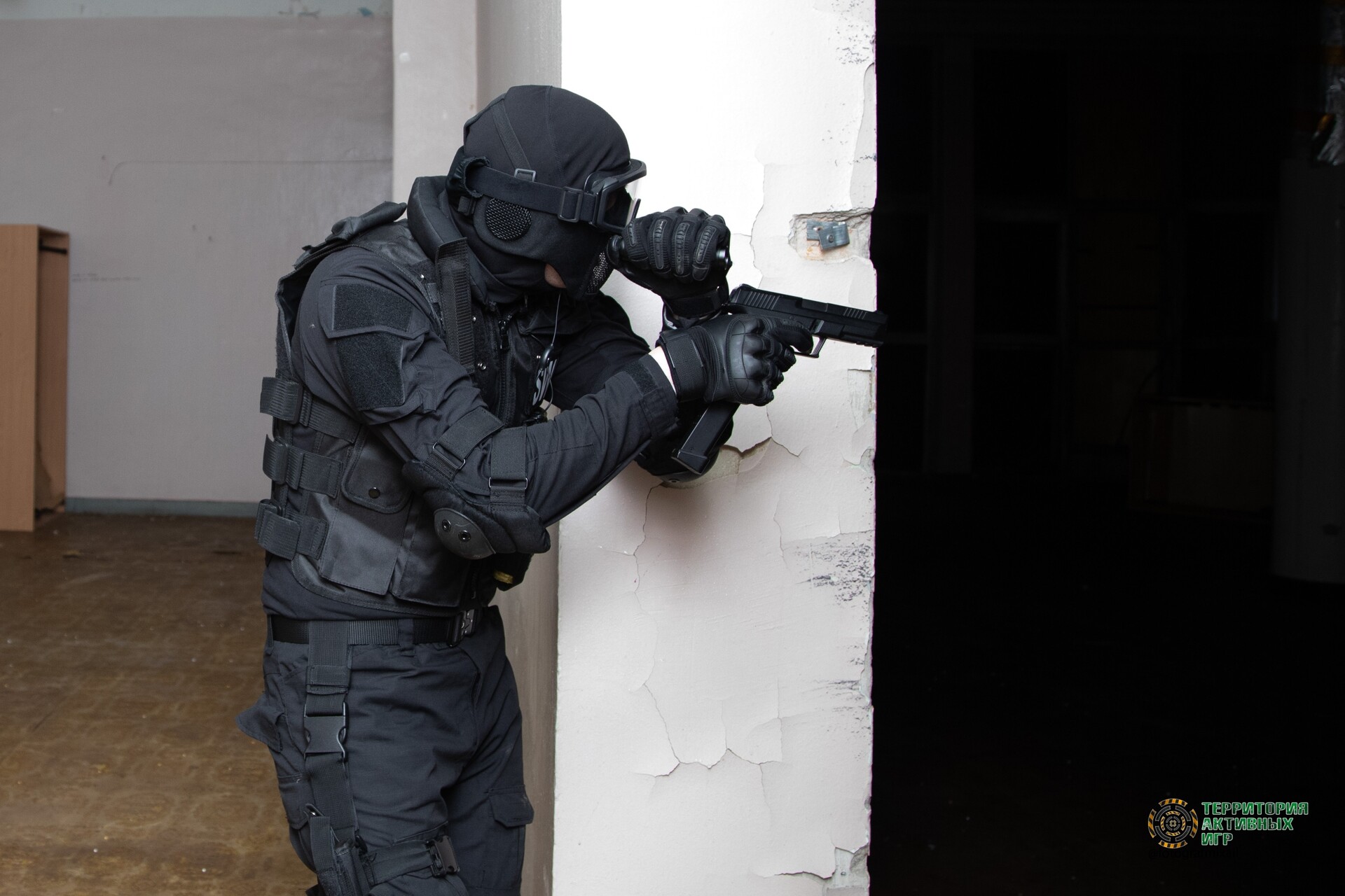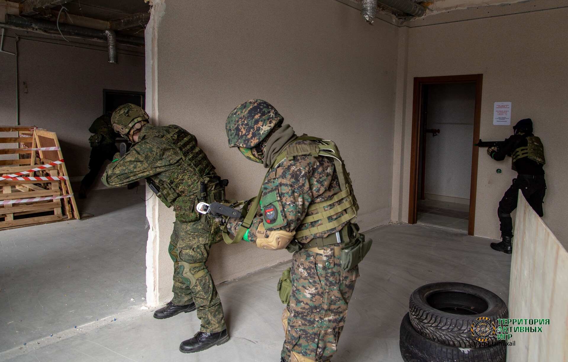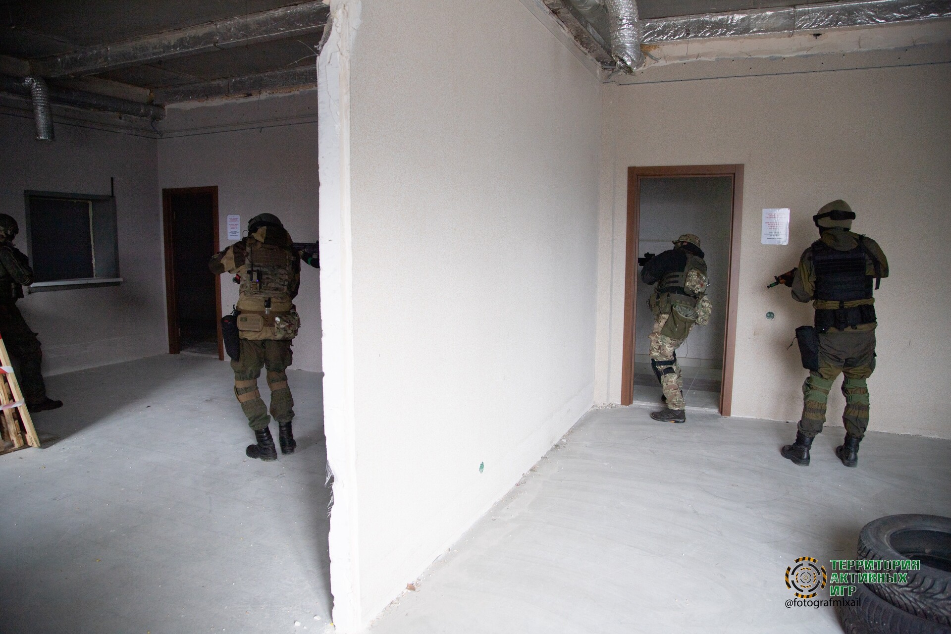 Полигон "ОФИС" - это большое 3-х этажное здание, 1 этаж административный и 2 игровых этажа.
